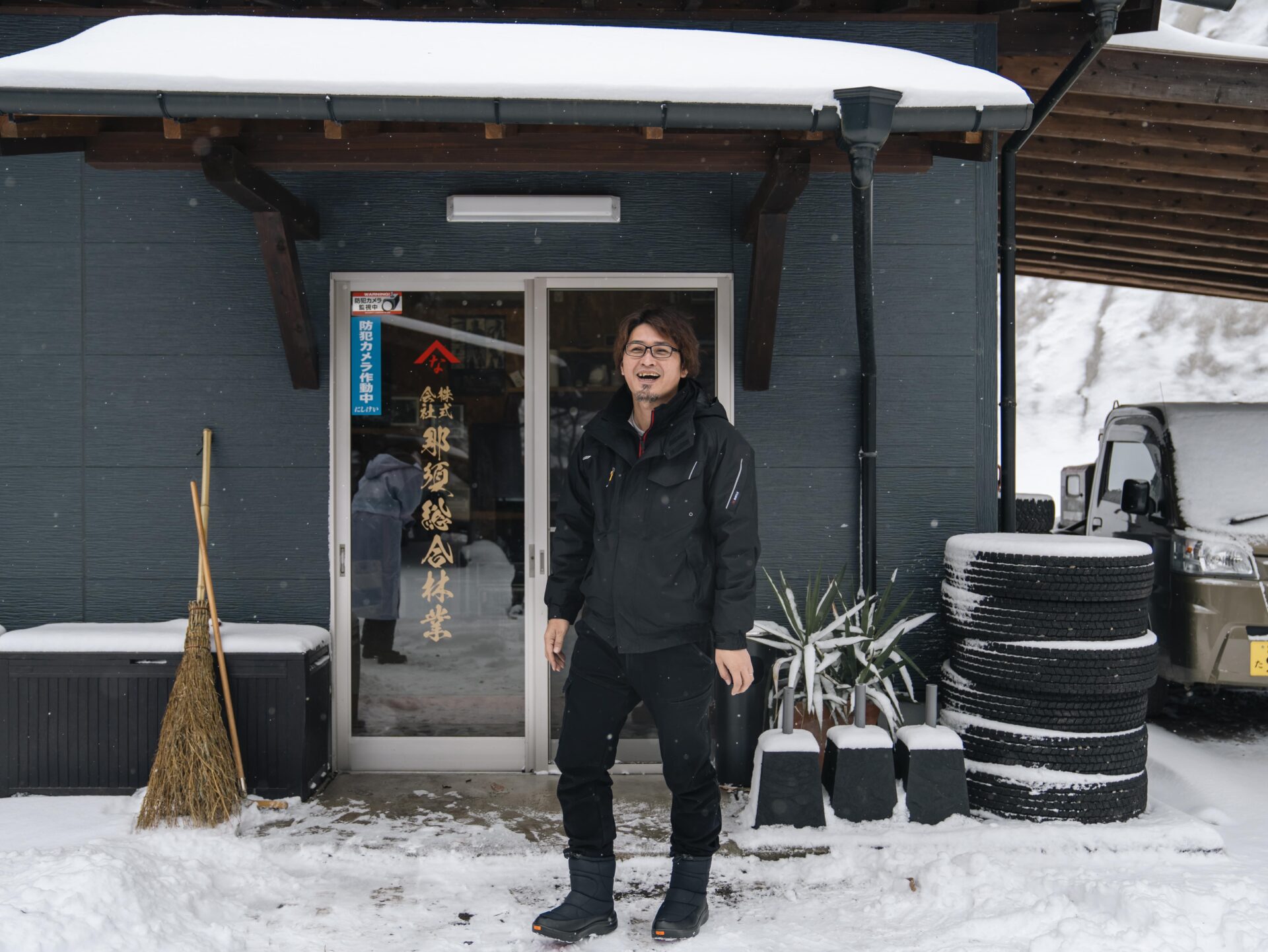 那須政彦さんは、お父さんの会社を継いで、ここ五ヶ瀬町で株式会社那須総合林業の代表をされています。那須総合林業はその名の通り、林業を生業にされている会社で、五ヶ瀬町を中心に西臼杵郡内の山の木の伐採や搬出、その後の植林などの業務を請け負ってされています。