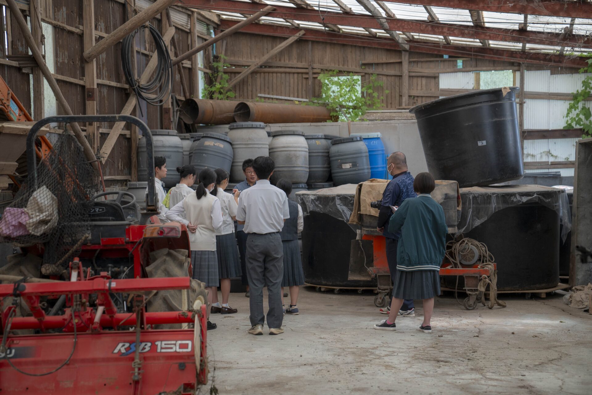 一心園さんでは肥料を2月の終わりと3月の終わり、8月の終わりと9月の終わりの4回まくそうです。また、カルシウムやマグネシウム、ナトリウムなどが含まれるミネラル肥料を普通の肥料にプラスしてまいているそうです。しかし、肥料が多すぎると川に流れてしまうため環境破壊に繋がったり、窒素が多すぎると病気になってしまったりするため肥料は少なめにしていると知り、たくさん試行錯誤をしながら地域のことも考えている鉄也さんに尊敬の念を抱きました。肥料だけでなく、草もまいているそうです。もみ殻や焼酎のかすなどを混ぜることで堆肥になるとおっしゃっていました。
