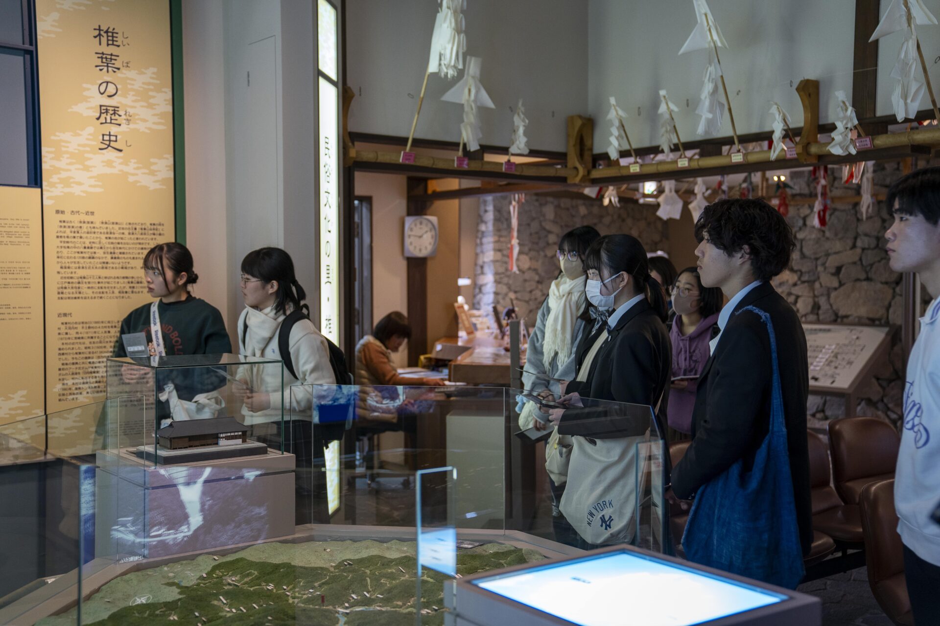 五ヶ瀬町から約1時間かけて、日本三大秘境の1つである椎葉村にやって来ました。第一印象は、豊かな山々と色鮮やかな自然が美しい場所。まず、私達のほとんどが椎葉村を訪れるのが初めてだったので、椎葉村民俗資料館を訪れました。そこでは、昔から今にかけて守られてきた椎葉村の伝統的な農業や民謡の歴史などを学ぶことが出来ます。私が特に印象に残ったのは、焼畑農業の持続可能性です。焼畑農業とは、作物を栽培した農地を焼き、灰にしたものと焼け残った草木を肥料にし、また作物を栽培するという一連の流れを繰り返し、行う農業のこと。これは、残った作物を無駄にせず、繰り返すことが出来るという点から、地球に優しく、これからも持続することが出来るとても良い手法だと思います。